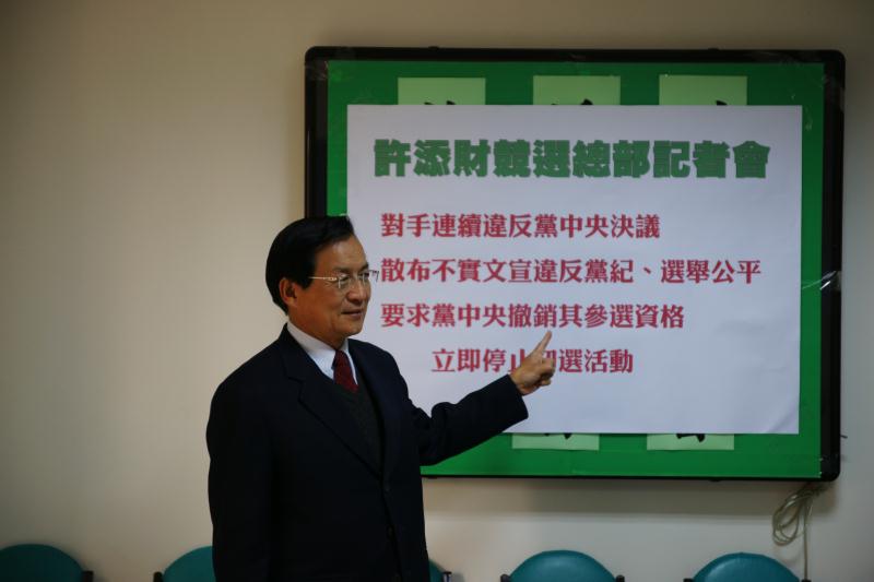 對方連續違反黨中央決議 散布不實文宣違反黨紀選舉公平 許添財要求黨中央立即停止初選活動 並撤銷其參選資格