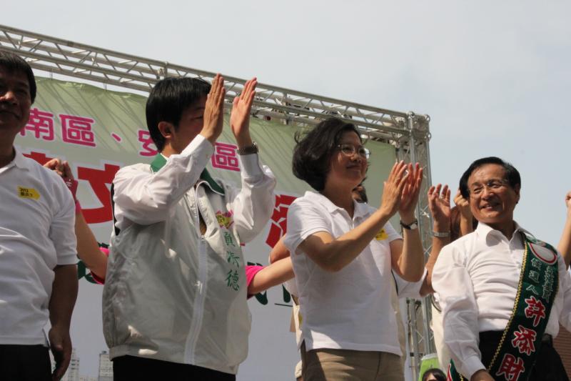 民進黨台南市立委參選人許添財與總統候選人蔡英文聯合競選總部5日(六)上午在台南市安平區原立委服務處成立。包括台南市競選總部主任委員賴清德及全國競選總部總指揮謝長廷、蘇貞昌、游錫堃、葉菊蘭、徐國勇等輪番上台演說力挺蔡英文,近2000名民眾到場為蔡英文加油打氣。