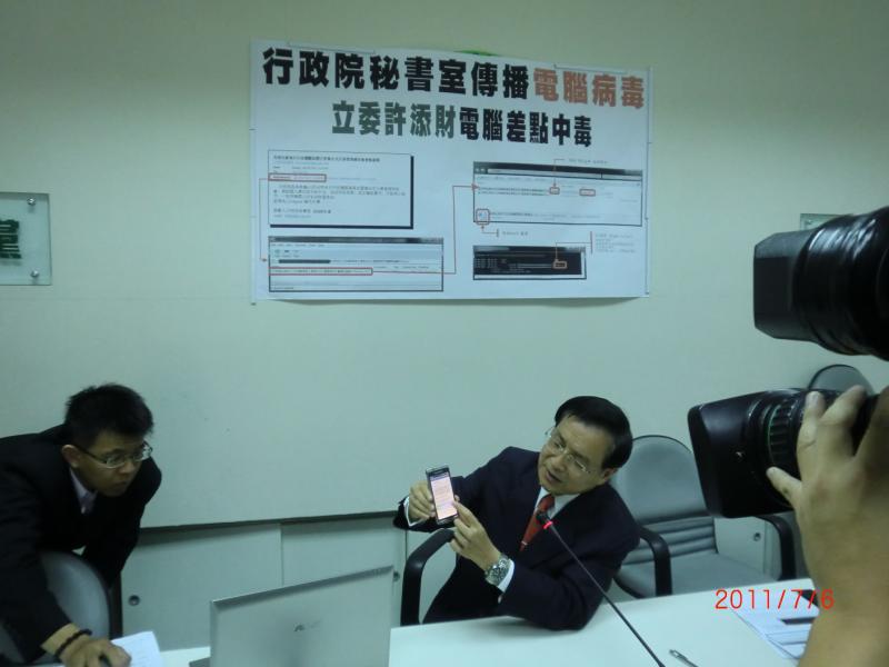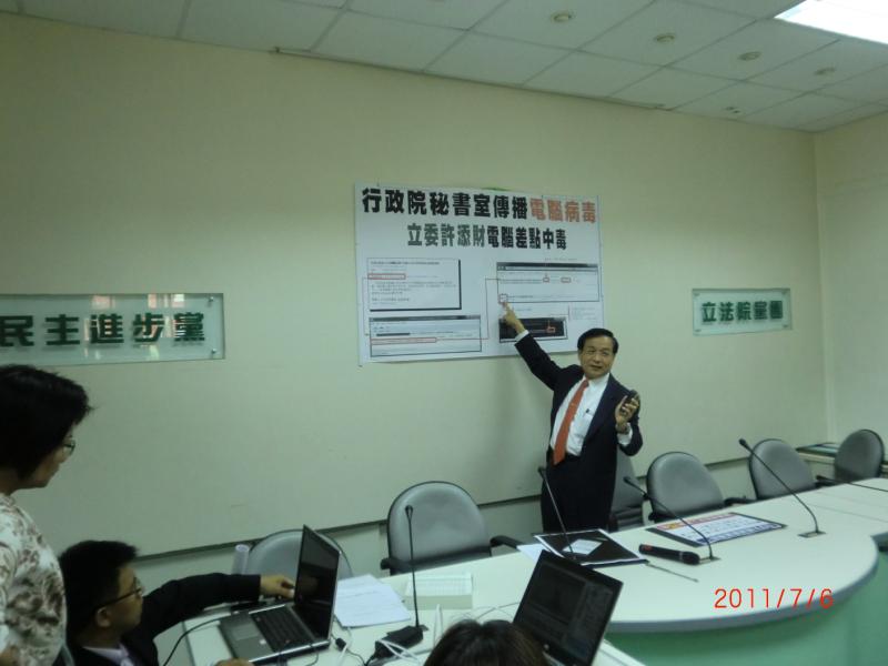 2011/7/6 下午 11:53:05行政院秘書室被電腦駭客利用傳播電腦病毒 立委許添財電腦險些中毒