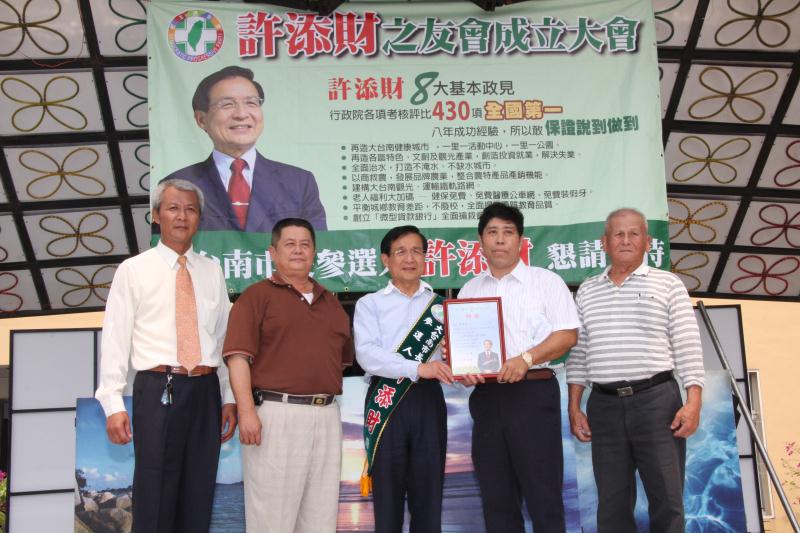 許添財山上鄉後援會11日上午十點在南洲村336-2號成立,山線一帶的鄉親好朋友近千名,扶老攜幼前來參加,表示對許添財的支持與鼓勵;主持人說這已經打破山上鄉參加活動的人數記錄。市長籲請鄉親好朋友五月接到民調電話時,一定要大聲說出『支持許添財,沒有其他人選,就是要許添財!!』
