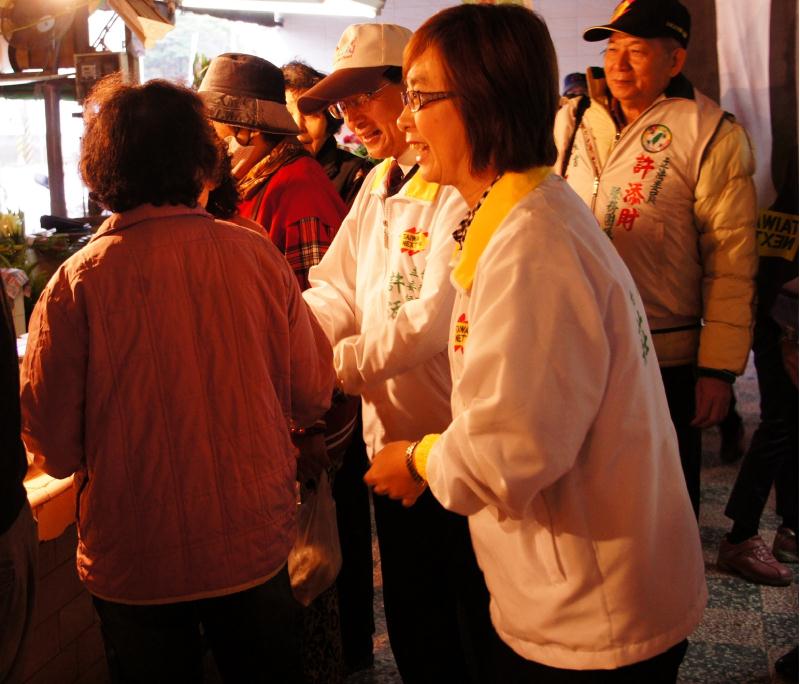 立委許添財十七日清晨六點即在前市議員周明德陪同下,抵達體育公園向晨運民眾寒暄問早,並走訪菜市場與長青委員會。稍後又趕往喜樹萬皇市場,與莊玉珠議員及其姐妹會成員帶領掃街。之後轉往鹽埕市場與陳進益議員會合,最後再到灣裡市場拜票,行程緊湊,寒風中群眾熱情不減,紛紛為許添財加油打氣。