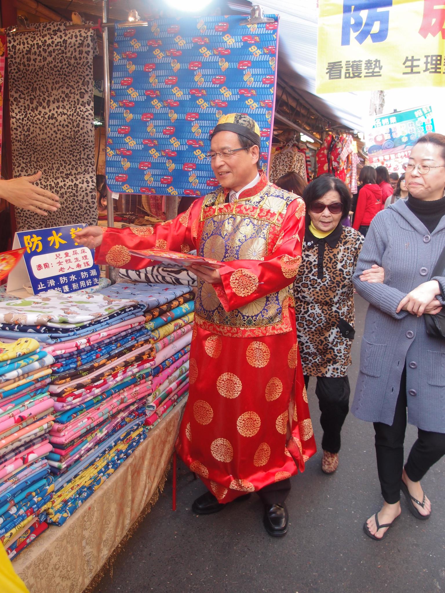 2014/1/24 下午 05:02:06民進黨台北市長擬參選人許添財今日(1/24)在台北迪化年貨大街發送特製「添財到」春聯,除行銷參選台北市長的市政理念外,也利用本名「添財」二字祝福台北市民馬年「添丁又發財」,並發表每年舉辦「台北國際台灣年文化節」政見。