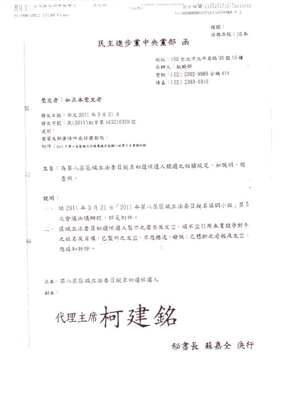針對民進黨中央黨部提名協調小組21日所做出的決議,許添財感謝黨中央還他公道,希望對方陣營能夠遵守黨中央的決議,立即拆除散播謠言混淆視聽的不實看板並撤回文宣,並期望對方能夠知錯能改勇於負責,對於因為不實文宣和看板在這段時間對許添財所造成的嚴重傷害公開道歉,以維護民進黨的形象,讓選舉回歸公平公正的理性競爭。
