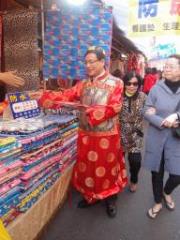 2014/1/24 下午 05:02:06民進黨台北市長擬參選人許添財今日(1/24)在台北迪化年貨大街發送特製「添財到」春聯,除行銷參選台北市長的市政理念外,也利用本名「添財」二字祝福台北市民馬年「添丁又發財」,並發表每年舉辦「台北國際台灣年文化節」政見。